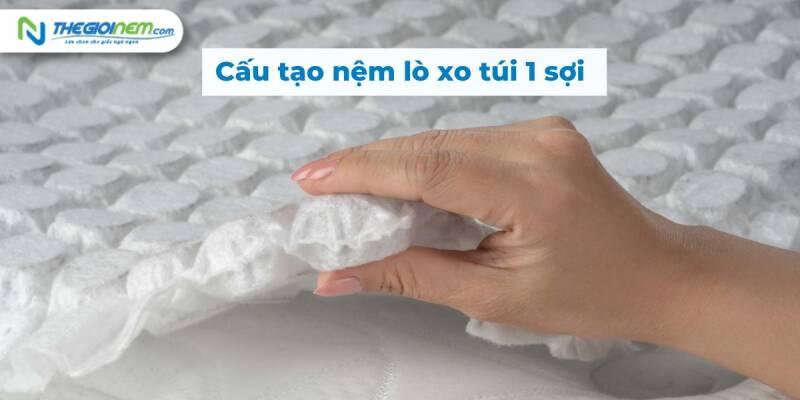 Nệm lò xo túi 1 sợi được cấu tạo vô cùng độc đáo. Các nhà sản xuất lập trình máy móc hiện đại liên tục xoắn các sợi thép thành khung nệm hoàn chỉnh, vững chắc. Hiện tại, thị trường Việt Nam chưa có đủ công nghệ để sản xuất dòng nệm này nên hầu hết các loại nệm lò xo túi 1 sợi đều có xuất xứ từ các thương hiệu nước ngoài. Hiện sản phẩm này đang được phân phối tại Cửa hàng bán nệm lò xo chính hãng tại Tây Ninh.