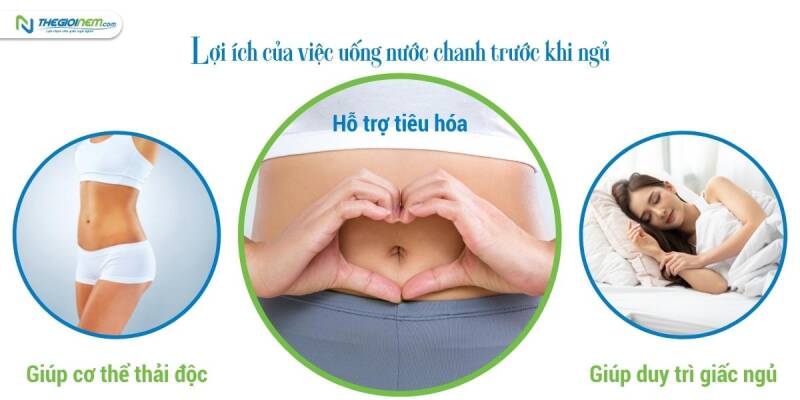 Chanh là một loại trái cây rất tốt cho quá trình giải độc của cơ thể. Hàm lượng dinh dưỡng trong chanh giúp loại bỏ độc tố, có lợi cho hệ tiêu hóa, giúp thận hoạt động hiệu quả. Đặc biệt, uống nước chanh trước khi ngủ sẽ giúp ích cho quá trình thanh lọc cơ thể diễn ra hiệu quả hơn trong khi bạn đang ngủ. Mang lại những lợi ích tuyệt vời vào sáng hôm sau.