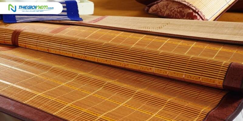 • Chất liệu: Chọn chiếu làm từ các chất liệu mát như mây, tre hoặc sợi tổng hợp có khả năng thoáng khí tốt. Những chất liệu này giúp hấp thụ và xả nhiệt tốt, mang lại cảm giác mát mẻ khi sử dụng.