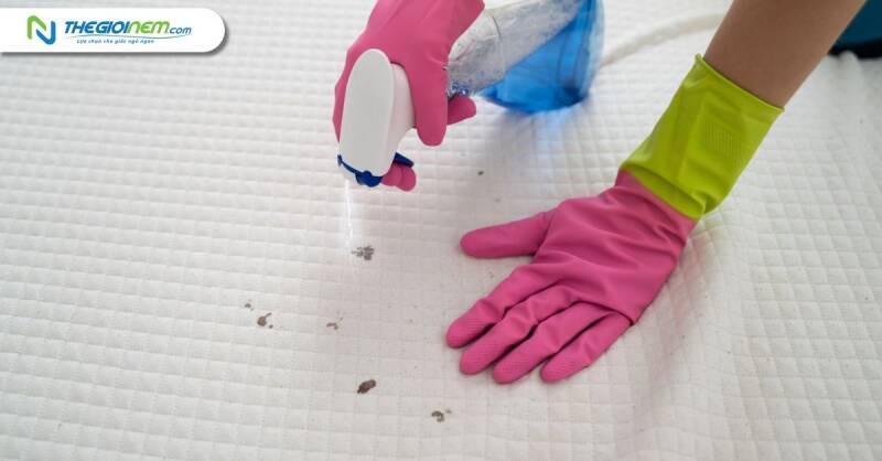 Nếu có vết bẩn, hãy xử lý chúng trước khi bắt đầu quá trình giặt. Sử dụng sản phẩm tẩy rửa nhẹ hoặc các phương pháp tự nhiên như nước và giấm để loại bỏ vết bẩn mà không làm tổn thương chất liệu của nệm.