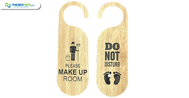 Mỗi phòng sẽ có một bảng kí hiệu riêng, và khi bạn treo trước phòng. Giúp bạn có được không gian yên tĩnh để nghỉ ngơi thư giãn, làm việc mà không bị làm phiền bởi người khác hay nhân viên phục vụ biết khi nào cần dọn phòng.