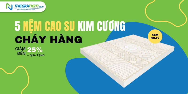 Bạn yêu thích nệm Kim Cương, nhưng lại phân vân không biết lựa chọn dòng nệm cao su Kim Cương nào? Hãy cùng, Thegioinem.com điểm qua 5 dòng nệm được người dùng yêu thích và ưa chuộng nhất nhé: