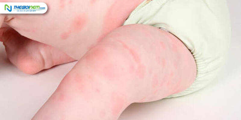 Dị ứng da: Da bé vô cùng mỏng manh và nhạy cảm. Do đó, nếu da tiếp xúc trực tiếp với nệm kém chất lượng trong thời gian dài sẽ dễ gặp tình trạng mẩn đỏ, ngứa, rôm sảy,... Khiến bé khó chịu, ngủ không ngon giấc hoặc nghiêm trọng hơn là viêm nhiễm da.